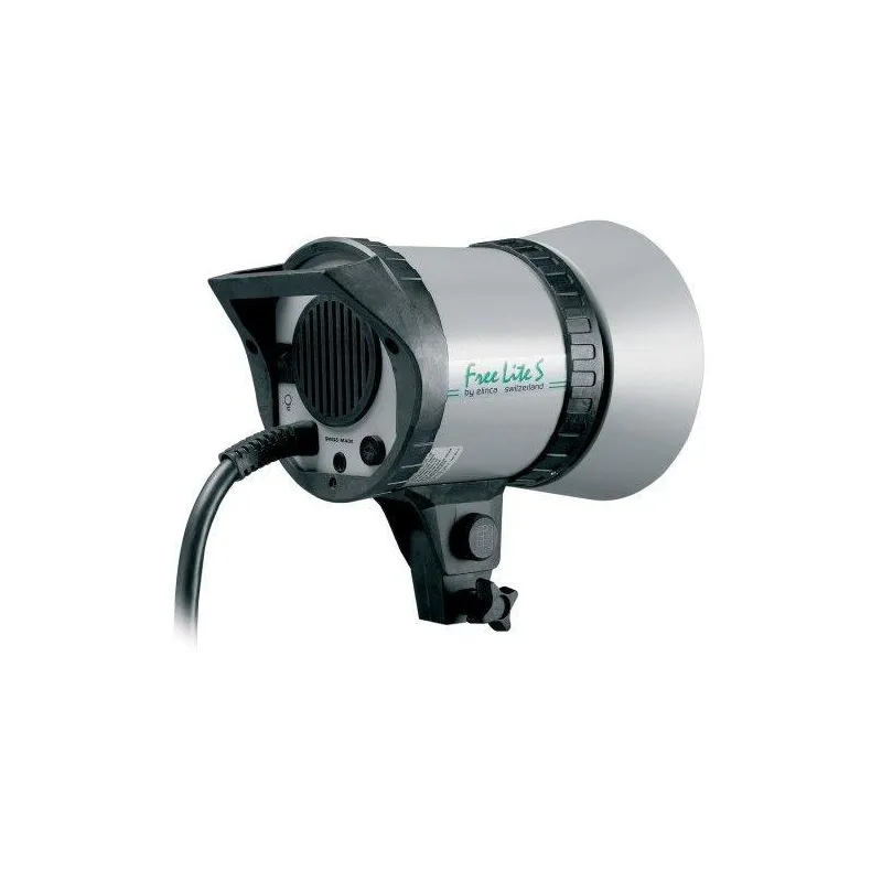The Elinchrom FreeLite S FlashHead is dedicated to the Elinchrom Ranger battery-powered pack. The Free Lite S features a 10' (3 m), low resistance power cable, modeling light switch and safety fuse.
