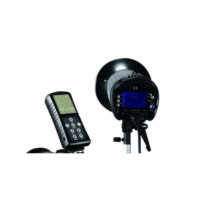 One of the essential additions to the flash construction is an LCD screen that displays all necessary information and is easily visible from a distance. Additionally, a remote control can be purchased, allowing for remote adjustment of the flash parameters when it is inconvenient or impossible to reach.