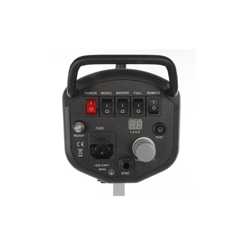 Linkstar LF-500D flash units are designed for professional use in the studio. They feature a fast charging time, a metal body, active cooling, an S-type bayonet, and a umbrella holder for accessories, along with a built-in light receiver. The digital display of the flash allows for precise power settings.