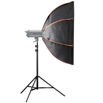 walimex proOctagon Orange Line Plus 120cmThe Softboxes of the Orange Line Plus series from walimex pro above all convince with their unique, high-grade quality. Extremely thick material and highly accurate workmanship guarantee a long lifetime, even after multiple setting up and dismantling. This Premium-Quality prevents bending, even with large size Softboxes.