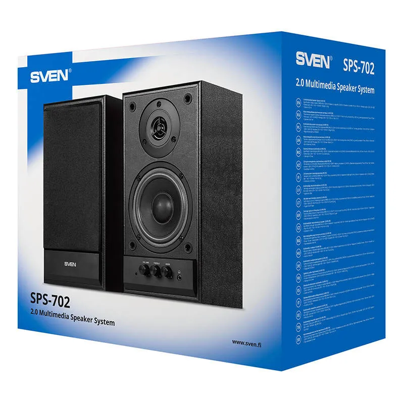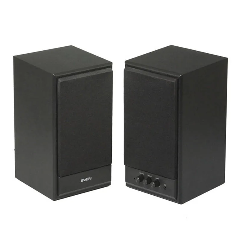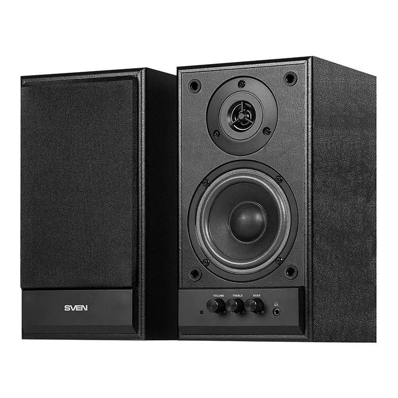 Experience your favorite songs like never before with the SVEN SPS-702 speakers. These speakers offer exceptional sound quality and feature user-friendly knobs for volume, bass, and more adjustments. They also have a headphone connection option and come in a stylish wooden enclosure (MDF) for a classic look.