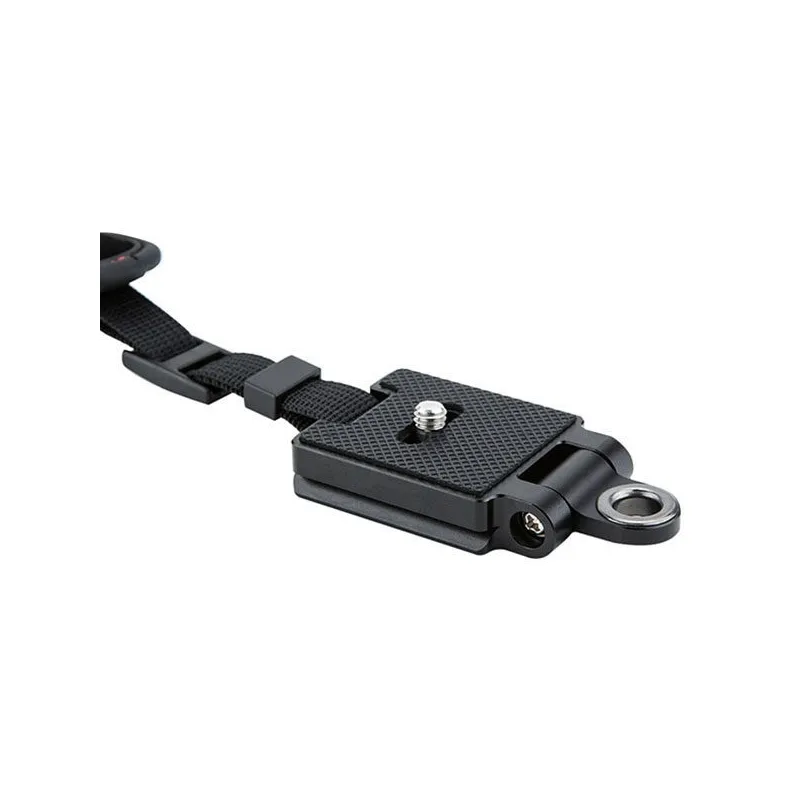 The JJC HS-ML1M Hand Strap is specially designed for use with a system camera with a mounted lens. The strap attaches to the 1/4"-20 tripod socket on your camera with the base plate and to the carrying strap mount with the other end. The wrist strap has an additional safety feature that prevents the camera from accidentally slipping out of your hand