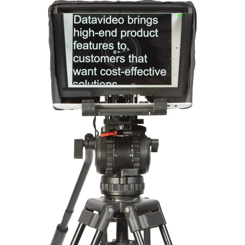 The Datavideo Prompter Kit TP-300 can be used in either a theatre setting or a video studio. Prepared scripts or cue sheets can be easily copied and pasted into the DV prompter app software (available for iOS and Android devices) and scrolled at a set automatic rate or controlled by a user with the wired/wireless remote for a more natural result.