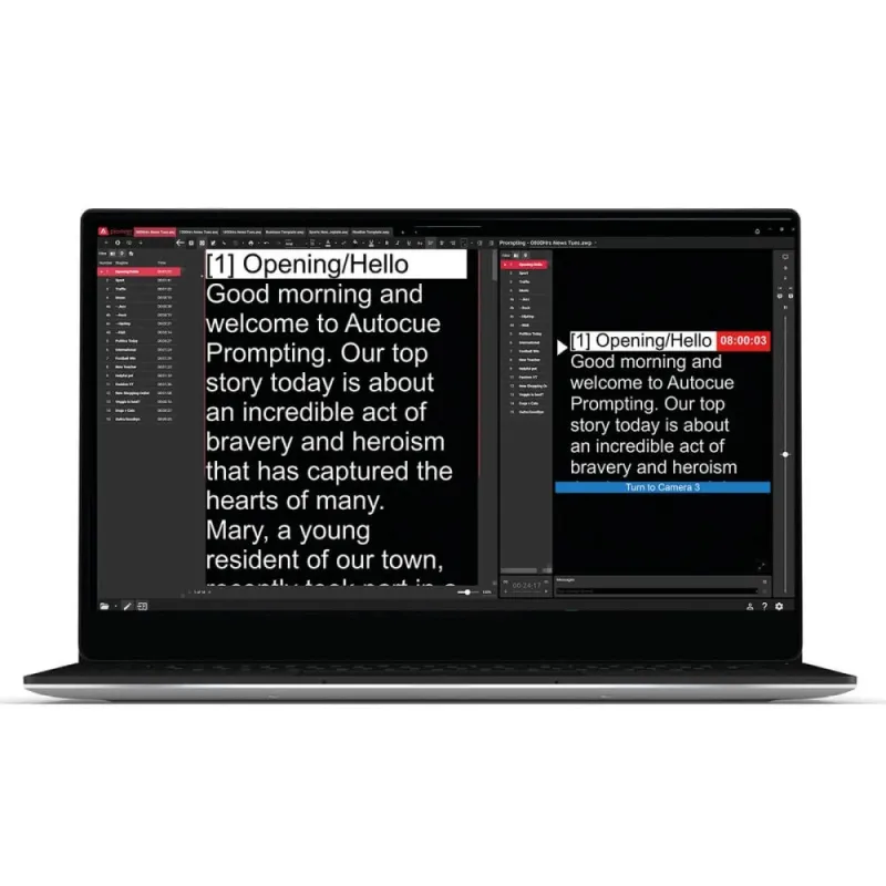 Autocue Pioneer is ready for the most demanding productions and customised for the need of professional operators. Shortcuts, bookmarks, and a run order manager are a given and you’ll find lots more, from settings for SOTs (Sound on Tape) and Presenter Instructions, to on-screen cue timer and message modules. Everything can be done while prompting continues because live editing is included as standard.