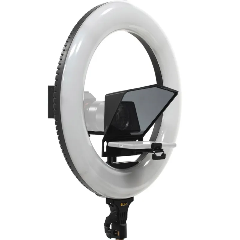 This teleprompter kit is designed for mobile devices, providing a convenient solution for on-the-go presentations and video recordings. The adjustable light temperature and Bluetooth control enhance usability, making it suitable for various shooting environments.