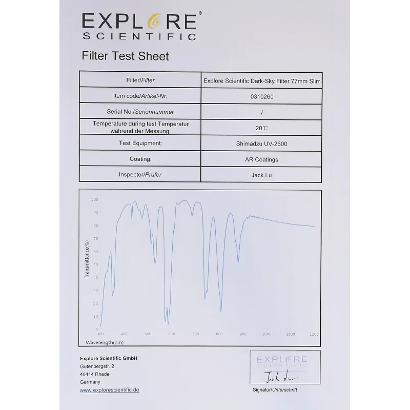 Bresser EXPLORE SCIENTIFIC Dark-Sky Filter 77mm Slim