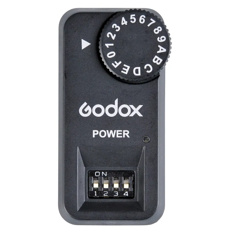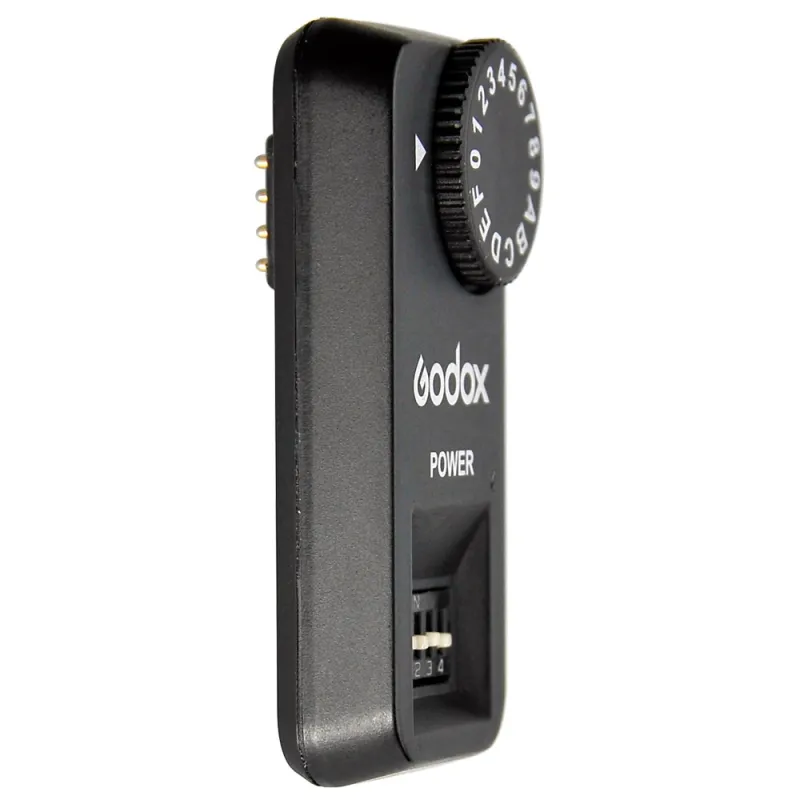With the Godox Power Remote FT-16S you can control the Godox Speedlite V850 and V860C flash wirelessly. You connect the small receiver to the flash's wireless control port and attach the trigger to your camera's hot shoe. You can place the flash directly on a light stand and trigger it remotely. You have access to 16 selectable firing groups, from A to F and from 0 to 9 via the rotary knob. With the channel knob on the transmitter you can set the flash intensity of each group individually. You also have the option to disable a specific firing group. The power of the flash is adjustable in steps of 3 EV, from 1/128 to full power.