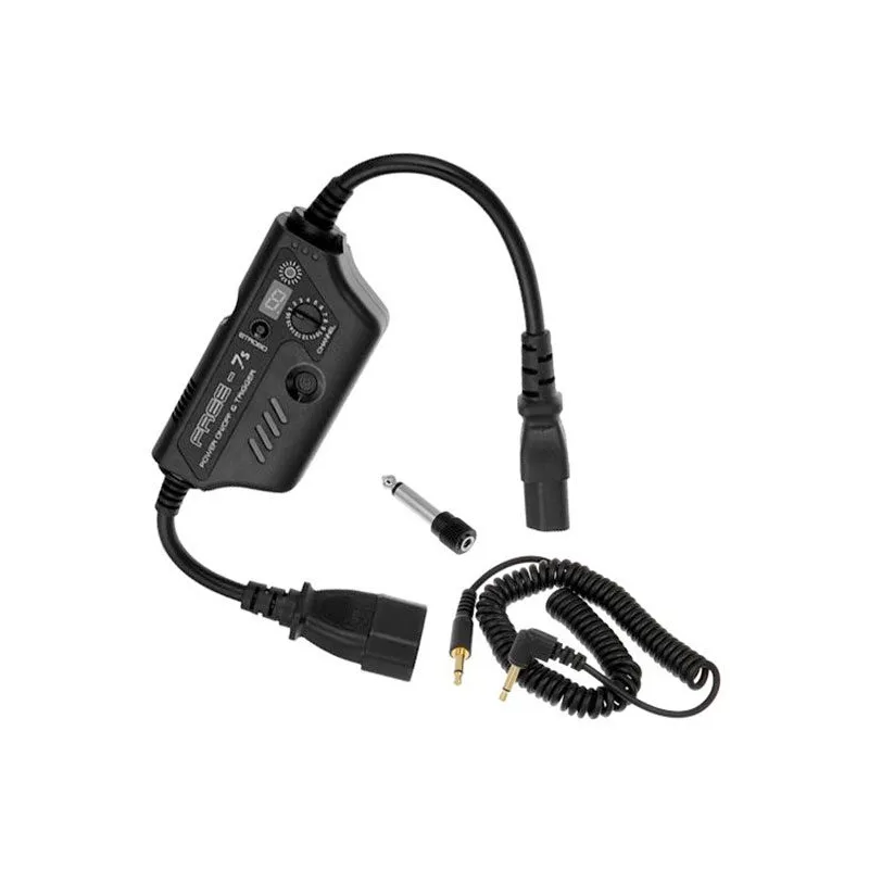 The SMDV Free-7s Professional Radio Slave Kit is a complete set to trigger a 220 Volt flash head from a distance of about 30 meters. With sixteen standard channels and six separate groups, the Fee-7s is ideal for working in busy locations or with multiple lighting setups. You attach the transmitter to the hot shoe of your camera. The receiver connects to the flash head.