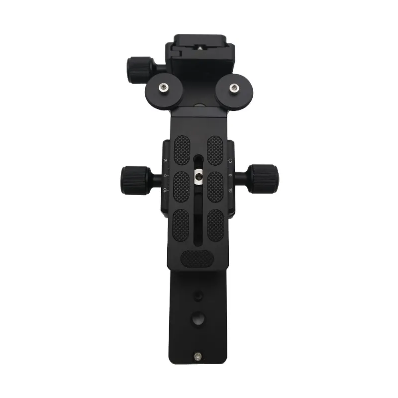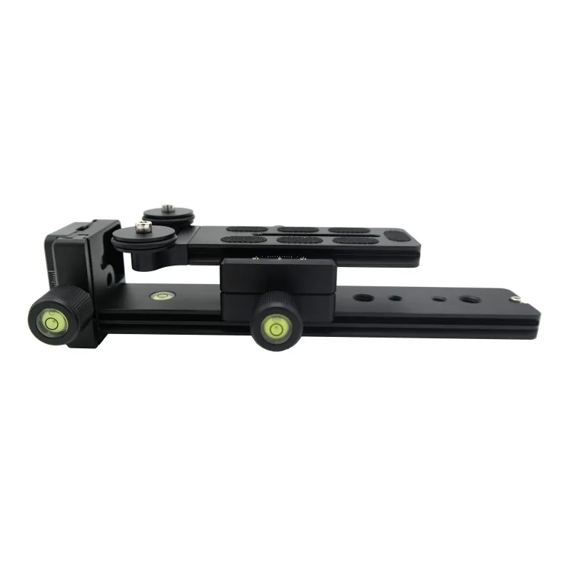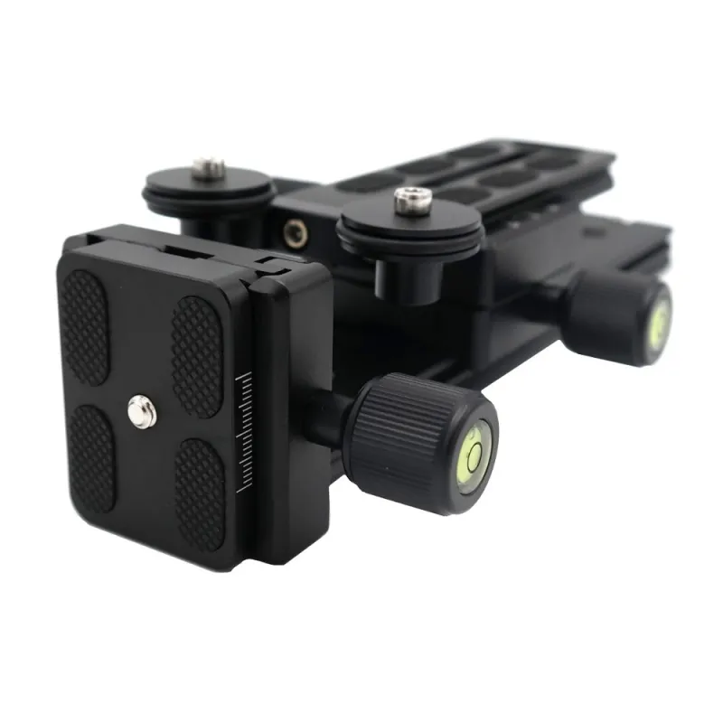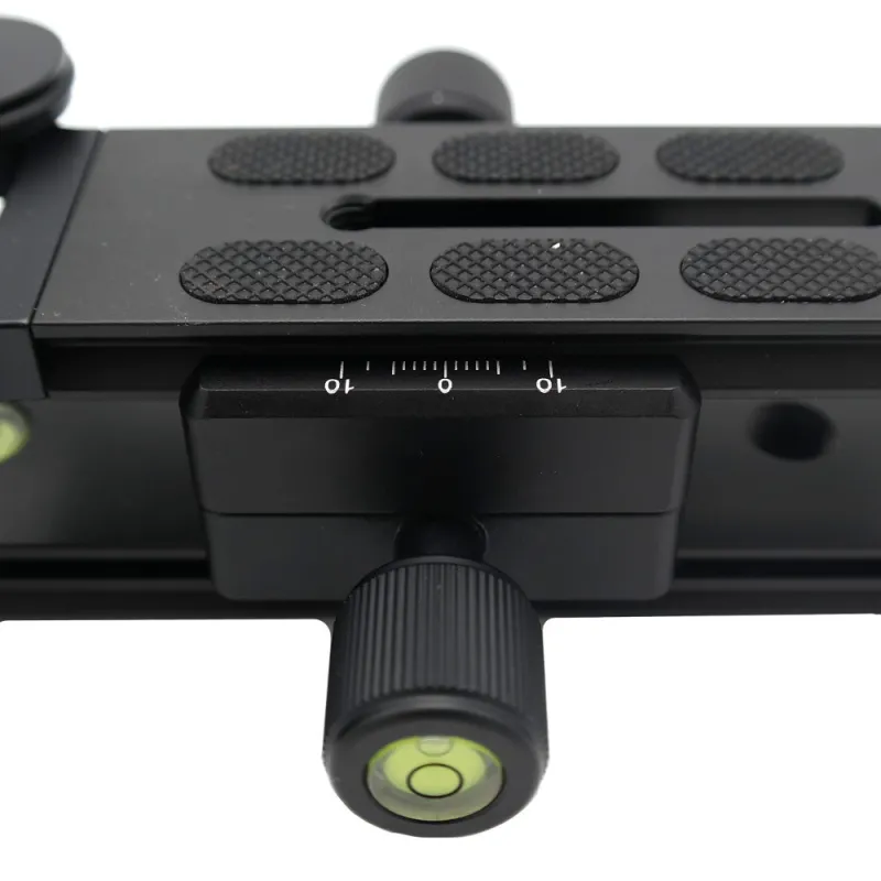 The rail and lens support are equipped with end stops to precent the camera from accidentally sliding off the rails. The Caruba L-200 comes with an Arca-Swiss compatible quick release and quick release plate with 1/4" camera screw.