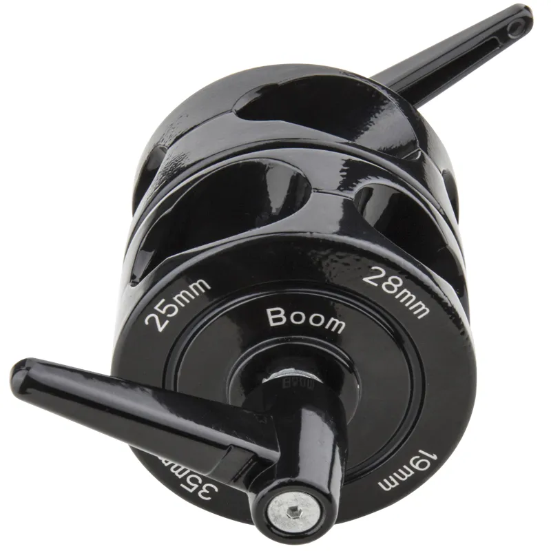 Designed for mounting a boom arm to a heavy-duty stand, this clamp is constructed with solid aluminum. It allows for quick and simple tilt and swivel adjustments of the boom arm using the metal ratcheted handle.