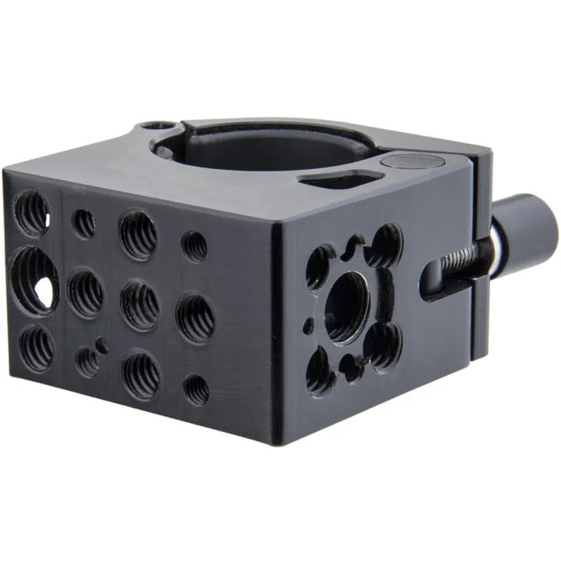 Made of aluminum extrusion, this coupler features a removable rubber pad inside, allowing it to fit any tube size or gimbal handlebar with a diameter of 25mm or 30mm. There are various threaded holes on the main base, including: