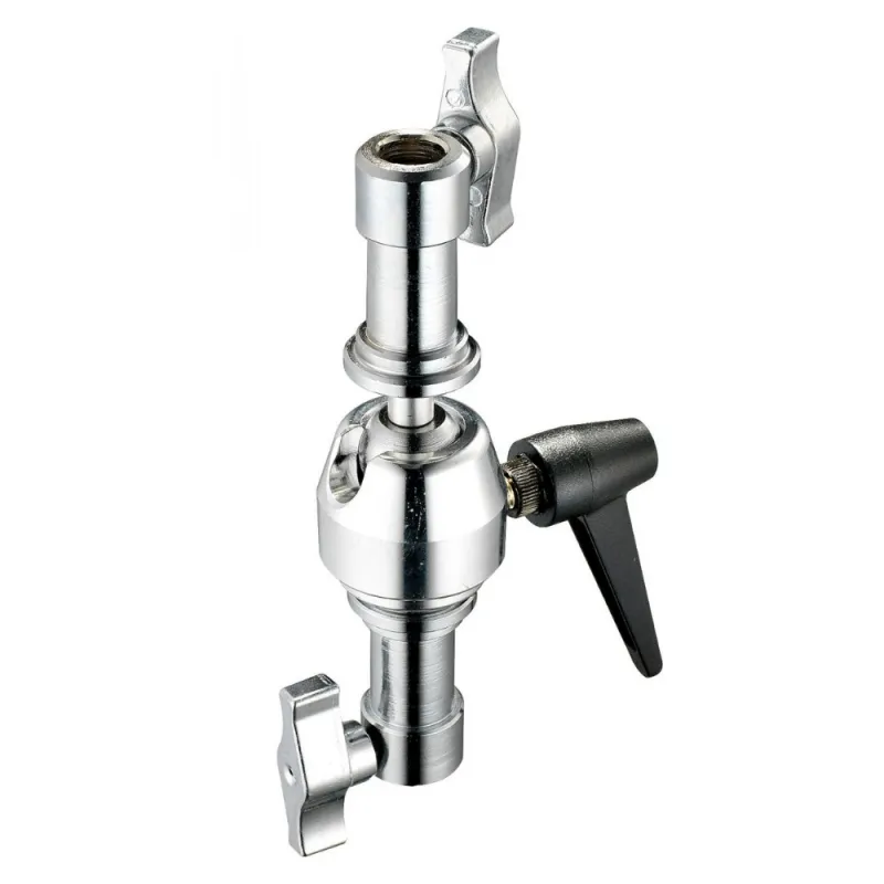 The AvengerF831 Baby Female Swivel with Ball can convert an arm or dowel up to 5/8" in diameter into a boom arm. It can add versatility to your non-swiveling light fixture (with optional #013) to make it more versatile. Each end has a locking Baby 5/8" (16mm) receiver. The ball joint has a pull-and-lock aluminum alloy handle with anti-rotation springs. It weighs 1.76 lb (0.8 kg).