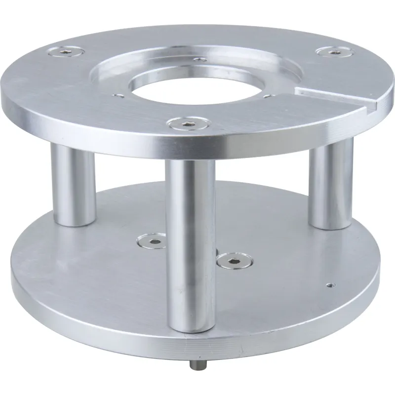 This is a 3 high Mitchell camera riser, which is assembled with a Mitchell female on top, a Mitchell male on the bottom, and three solid aluminum rods measuring 20mm in diameter.