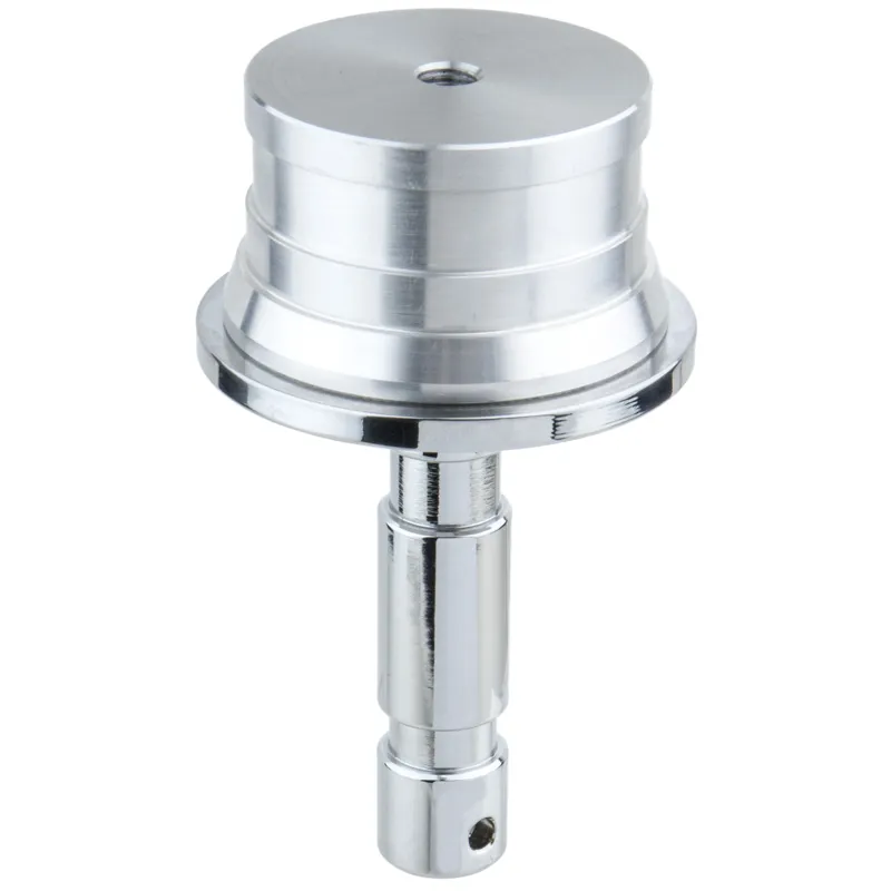 The 1-1/8 (28mm) junior chromed steel pin is welded to a round plate, which is securely mounted on the Elemack starter using two 3/8-16 bolts. This adapter allows you to use Elemack attachments from a combo stand or any other equipment that comes with a 1-1/8 (28mm) junior receiver.