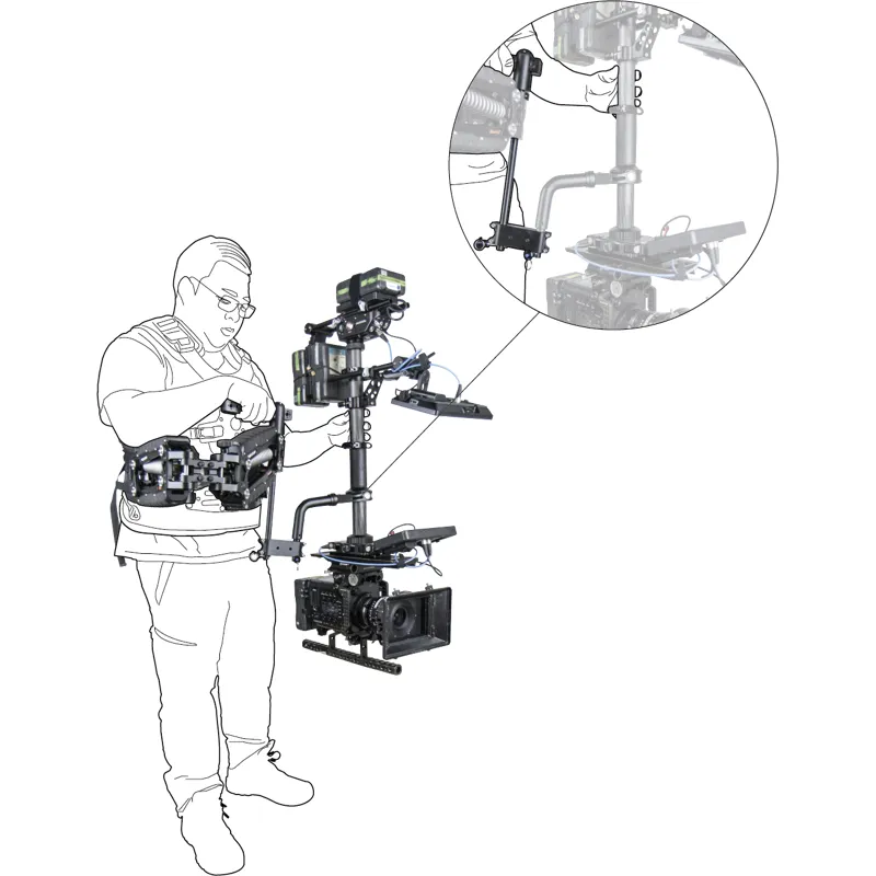 The length of the standard arm post is 320mm (420mm is optional), allowing you to adjust the configuration for a better dynamic camera angle. The bottom of both posts also comes with a through hole for a quick release safety pin (supplied) to ensure safety for the configuration.