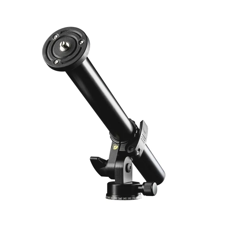 The Tripod Extension Arm by mantona is ideal for shots with the camera position outside the tripod axis, e.g., from above. It is also perfectly suited for macro and still life photography. The arm can be panned by 0 to 90 degrees on the joint and tilted by -5 to 180 degrees. That way, it offers a lot of flexibility in finding the right camera position. The tripod plate, on which the camera is mounted, can be rotated by 360 degrees.