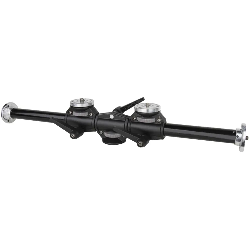Tether Arm is a handy and elegant solution for tethered shooting. The arm center comes with a 3/8 receiver, offering an easy mount on the tripod head as a crossbar. A 3/8-16 screw equipped on one of the gliding platforms and a 1/4-20 on the other allows for tethered shooting with either two cameras or a camera/laptop. Additionally, a fixed platform with a 3/8 screw at both arm ends allows for the mounting of more than two items.