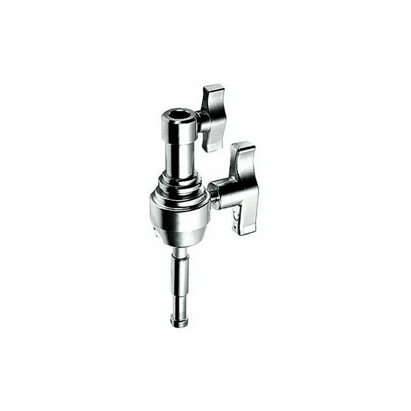 This Avenger F830TH Baby to Junior Swivel Pin adds articulation to your stand or boom. One end slips onto a male 5/8" pin while the other supports a light or accessory with a 5/8" receiver. Removing the stand tightening knob allows you to drop the 1 1/8" end into a Junior receiver. The ball joint allows 180° swivel of the fixture, while the large handle provides secure locking in the chosen position.