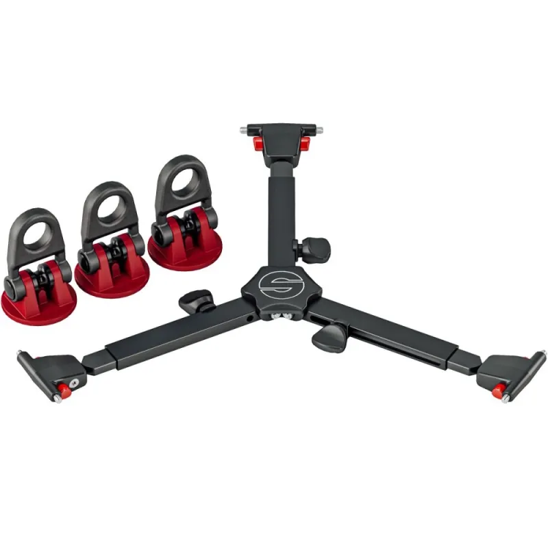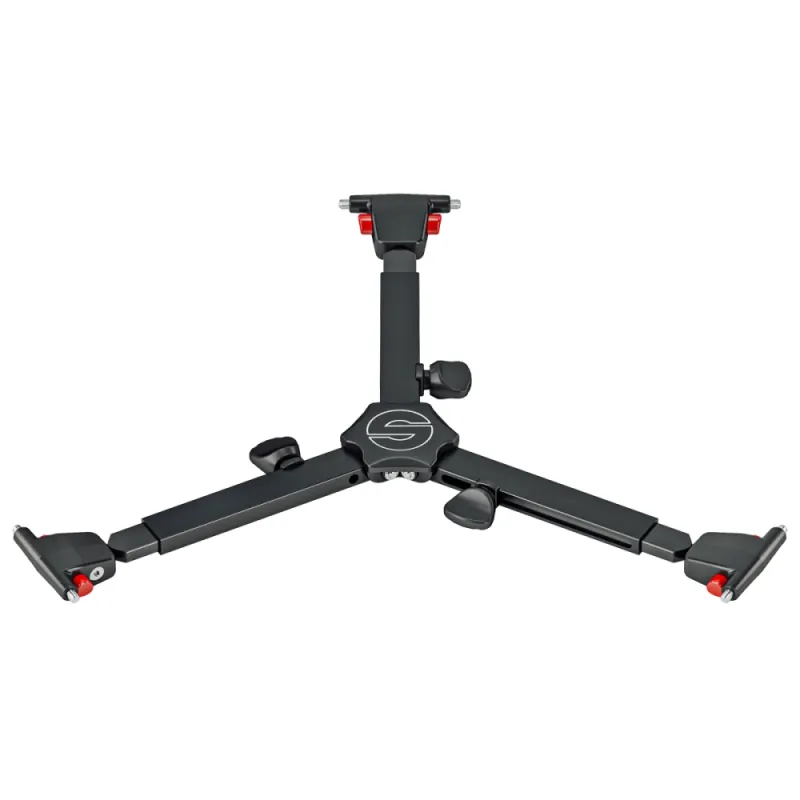 Detachable mid-level spreader and rubber feet for tripods 75/2 Mk II. The spreader allows for a small footprint in narrow spaces and stability on uneven terrain.
