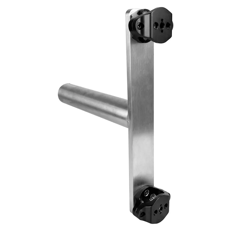 These couplers are great for mounting the Easyrig Cinema3 arm to a 2-inch pipe. This setup can be used with a dolly, rickshaw dolly, or in situations where the cameraman can sit down without wearing a vest.
