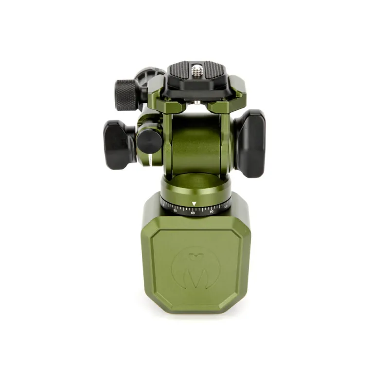 The Window Mount Trinity Kit features an AirHed Trinity compact pan and tilt head. The Trinity comes with a panning arm that can be detached for transport. The head has separate controls for the pan base and tilt function. Both the clamp and head are available in Darkness (matte black) or Moss, a rich shade of metallic green.