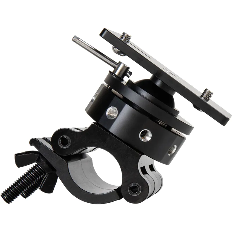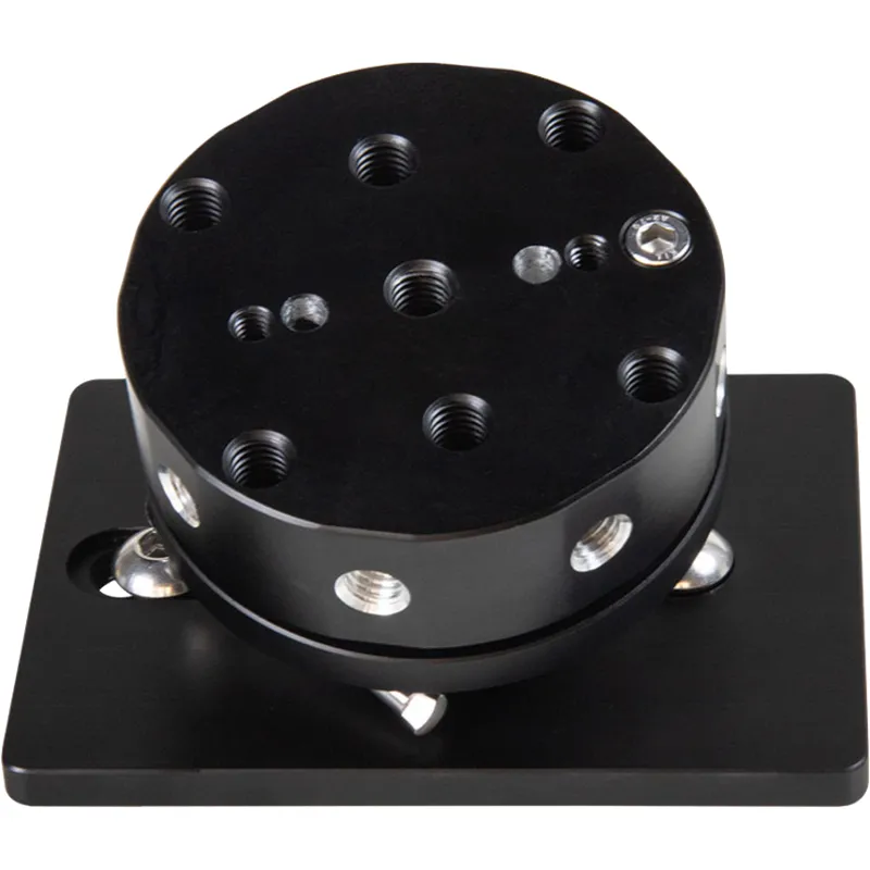 Kupo Low Position Leveling Base, made of machined black anodized aluminum, is 70mm high with a 30-degree inclination, making it ideal for car mounts and camera rigs. The pre-drilled holes and pattern allow you to mount it on a tripod, cheese plate, couplers, and Mitchell base mount with a tie-down adapter.