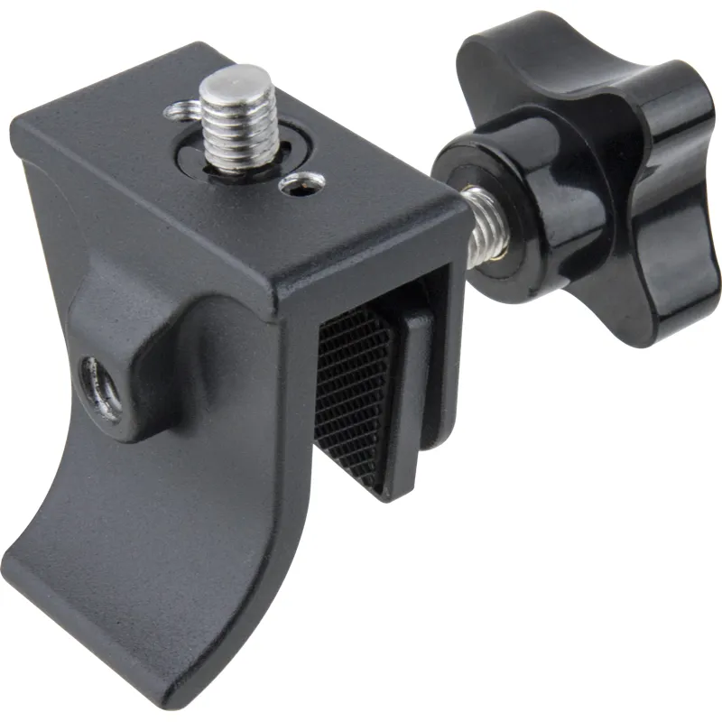 The car window mount clamp is an ideal tool for photographing and videography from an automobile. The clamp can be easily mounted on the window glass of a vehicle using a screw-down knob. Additionally, the window glass is well-protected by rubberized cork on the flat surfaces inside the clamp, including the screw-down disk.