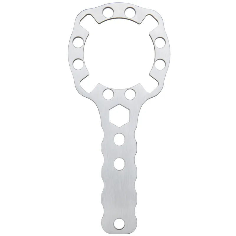 Mitchell Spanner Wrench is made from stainless steel, making it a sturdy and long-lasting tool. It features concentric holes aligned with the Kupo Mitchell Castle Nut in various positions, allowing you to easily tighten or remove the Castle Nut. Additionally, it has an M12 size in the central handle that meets the common needs in the professional rigging industry.
