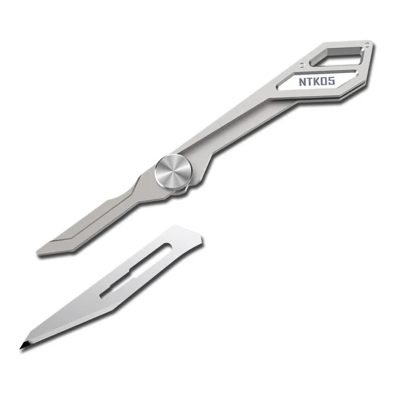 The Nitecore NTK05 Titanium Keychain Knife will come in handy again and again. Its handle and blade holder are made of TC4 titanium alloy and the blade is a very sharp, easily replaceable scalpel blade. At the back of the handle allows you to slip the knife onto your key ring
