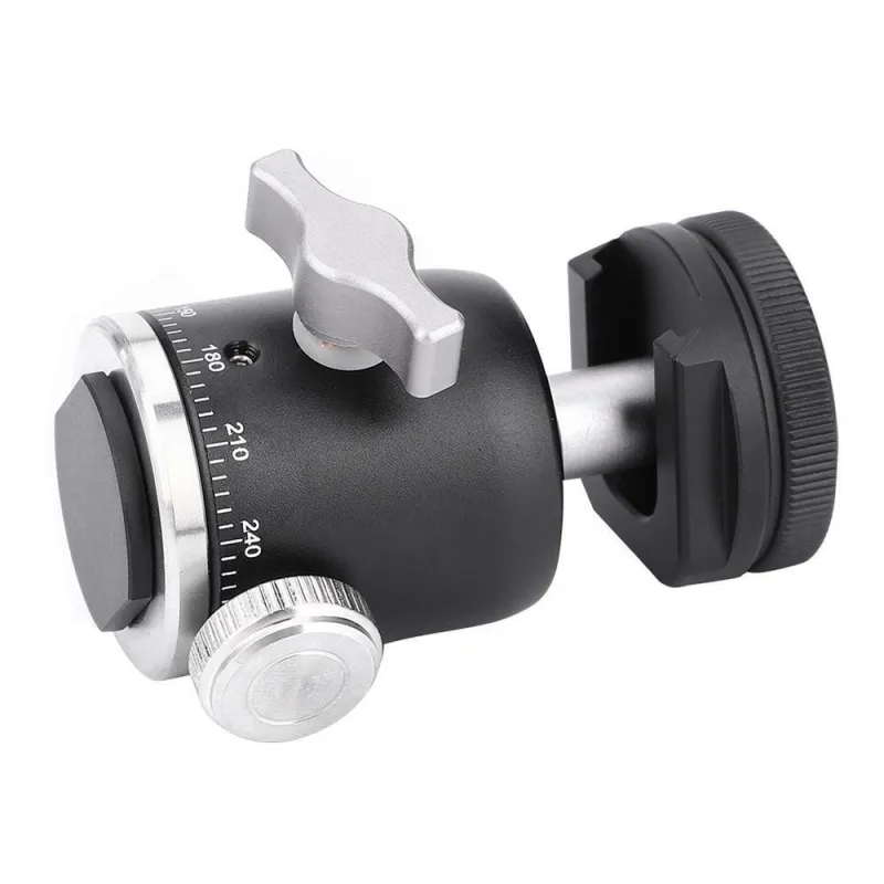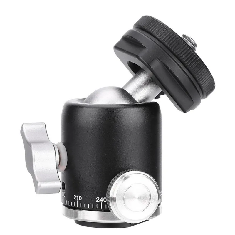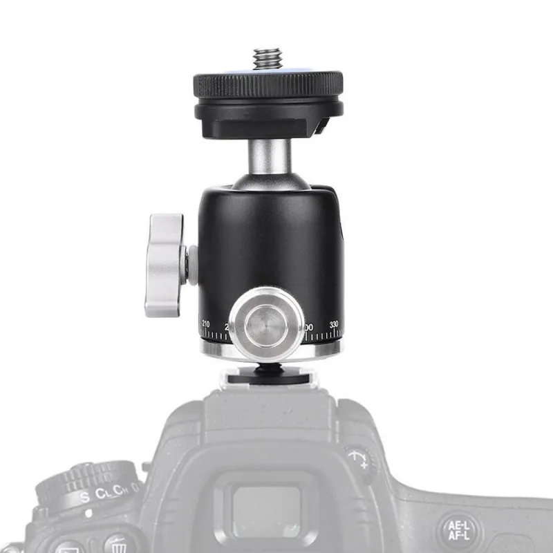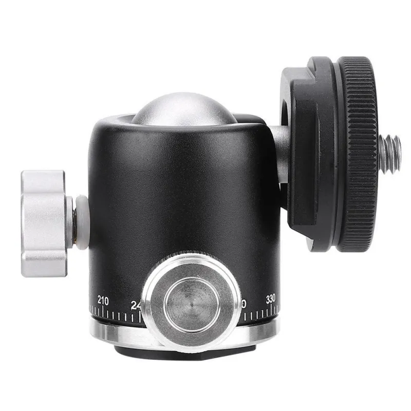 The Caruba FS-02 Mini Ballhead is a lightweight mini ballhead with a cold shoe mount on the bottom and a standard 1/4" thread on top. The ballhead allows you to position your compact camera, flash unit, video light or microphone in any desired position in no time at all.