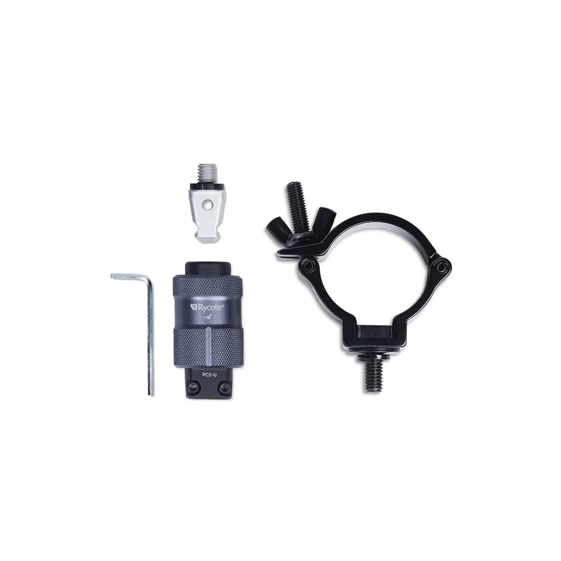 A valuable time-saving solution for film, lighting, and sound crews who need to affix a mic, shockmount, windshield, or lighting accessory to a pole such as a truss, scaffolding, or rigging setup, this Rycote PCS-Utility Kit includes the PCS-Utility quick-release adapter and a large Rycote Half Coupler that fits on poles ranging from 1.9 to 2" in diameter.