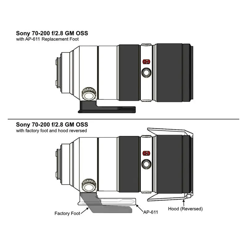 These custom low-profile replacement feet replace the factory foot on the rotation collar of your lens. These feet also serve as the Arca-Swiss Style quick-release plate eliminating the bulk and complexity of an additional plate. A Wimberley lens foot also improves lens handling on a conventional tripod head, such as a ball head, and also makes it easier to pack.