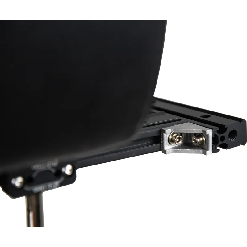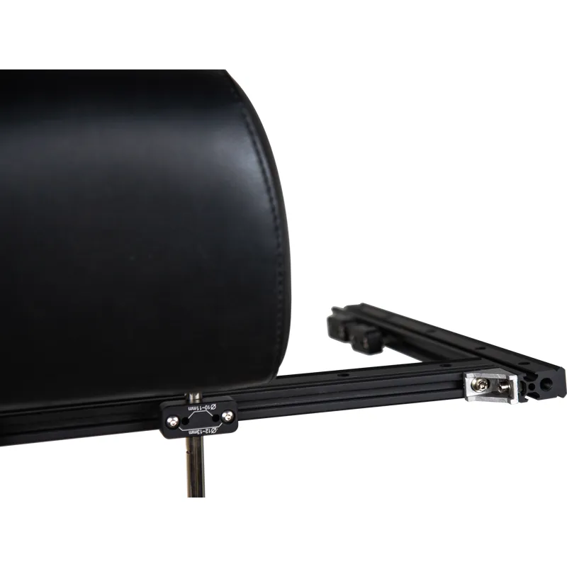 The Kupo Headrest Mounting Bracket is constructed from a black anodized aluminum extrusion bar. It features: