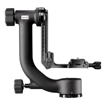 The professional Gimbal tripod head is ideal for the use of long, heavy lenses in sports or nature photography. It was developed to facilitate the vertical or horizontal tracking of quickly moving objects and to prevent the camera or lens from sinking like it can happen with ball heads. Therefore the gravity center of the equipment is optimally balanced.