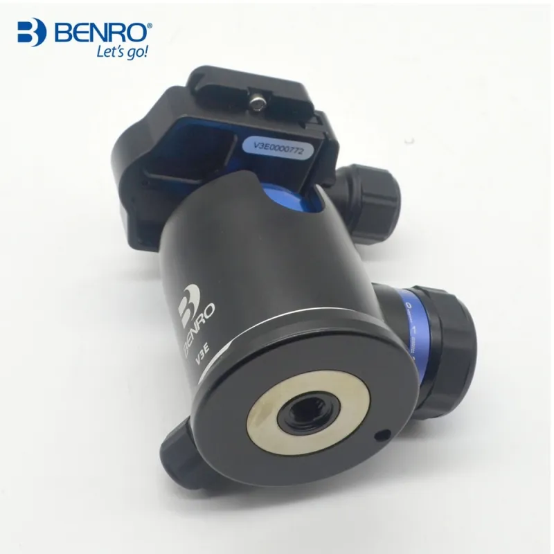 The Benro V0E Ball Head has a load capacity of eight kilograms and weighs only 400 grams. It has an Arca-type compatible clamp and quick release plate for quick insertion and removal of the camera.