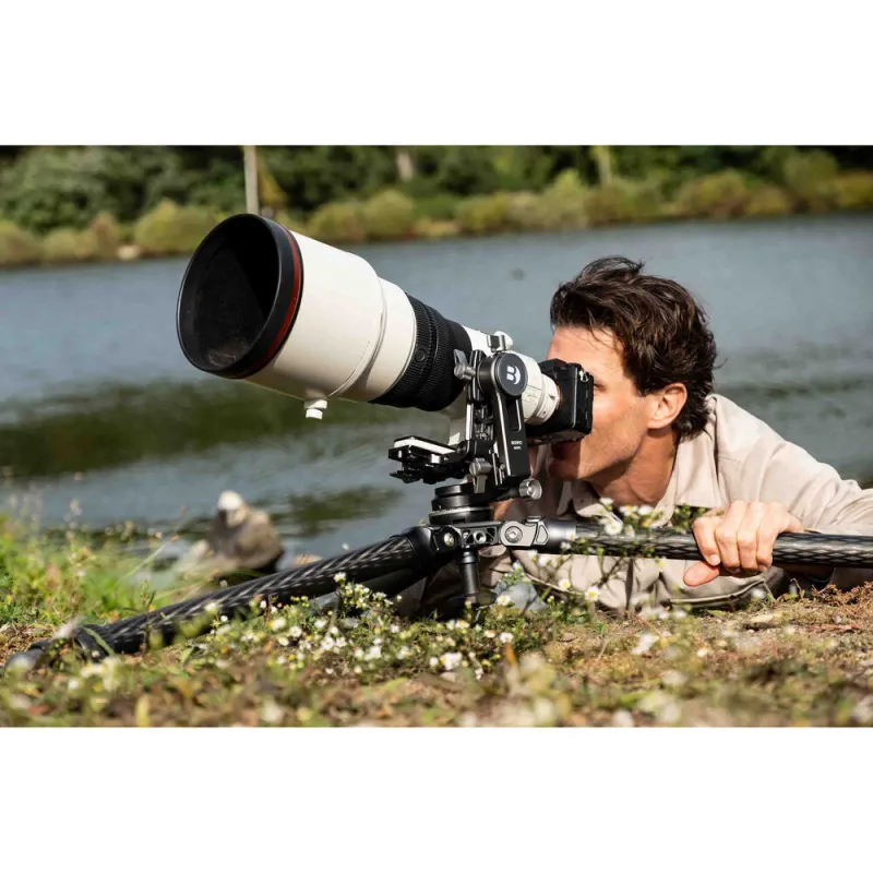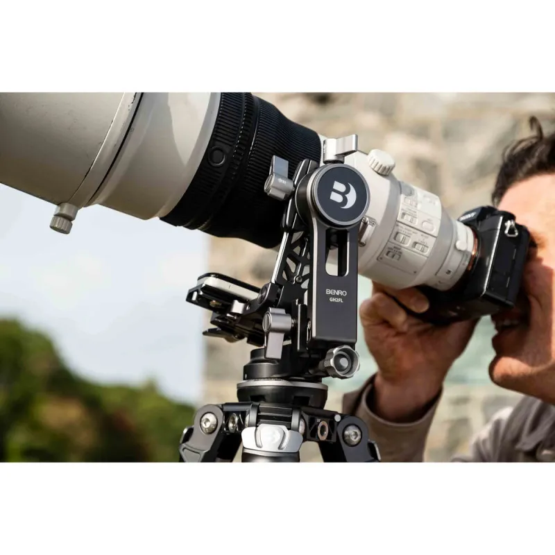 The GH2FL Folding Gimbal Head from Benro is a full-featured gimbal head designed for easy storage and transport, featuring a unique folding design.