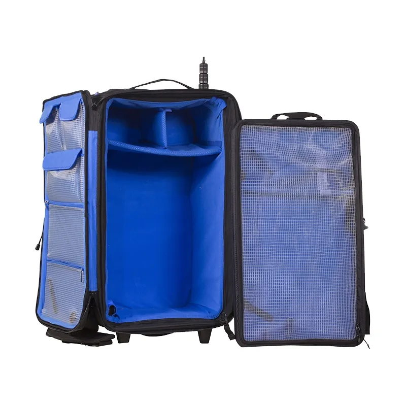 The bags have a flexible internal divider system that can be configured according to the user’s needs. Two external pockets to store extra accessories and two special external pockets to hold any boom poles.