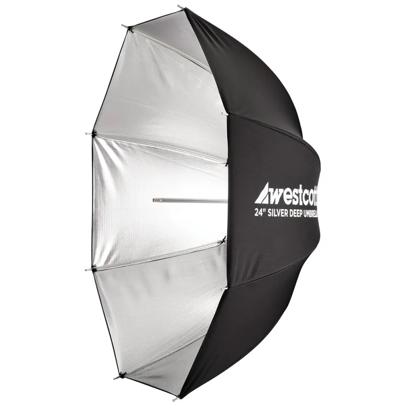 The Westcott Deep Umbrella - Silver Bounce (24") is ideal for traveling photographers, headshots and as a hair light.