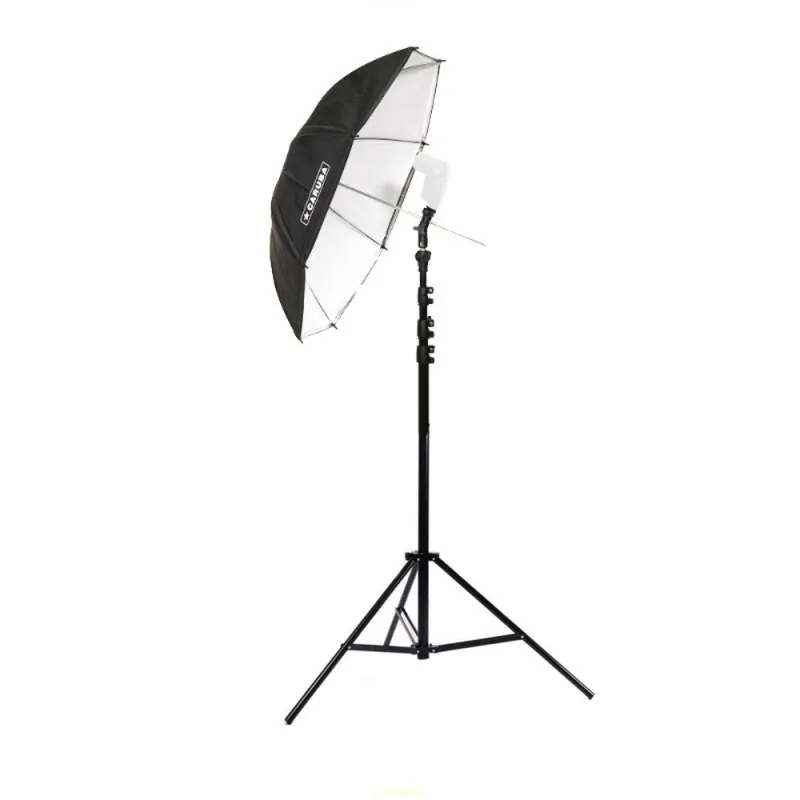 If you remove the black cover from the umbrella, you can use it as a shoot-through diffuser closer to the subject. You get a much softer and diffuser light on the subject! You can use the black cover to turn the Caruba umbrella into a bounce source. That way you can get a more powerful light beam!