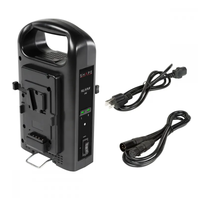 The new fast-charge SHAPE Intelligent Dual V-Mount Lithium-Ion Battery Charger is an ideal match for the SHAPE FULL PLAY Batteries. It provides simultaneous charging for up to two batteries and can also be used as an AC Power Supply which delivers 4A of power output.