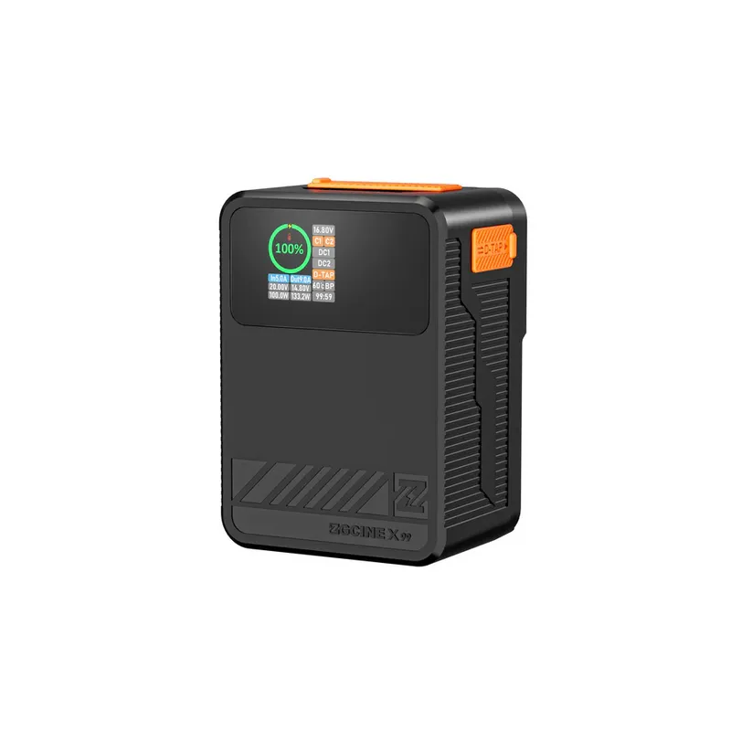 The ZGCINE X99 V-Mount Battery is the first of its kind with real-time port detection and a 1.3-inch IPS display for monitoring power, voltage, and temperature. It features PD 100W fast charging and multiple output ports, making it essential for professional creators.