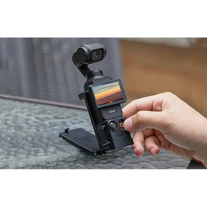 The Sunnylife 761V2 is a magnetic mount for the DJI Osmo Pocket 3 that provides a stable hold thanks to six built-in magnets, allowing you to record safely even during intense activities. The mount is multi-functional - it works well as a table-top tripod, vlogging mount, driving mount, or for time-lapse shots. Equipped with a 1/4-inch socket, folding 2-pin mount, and cold shoe adapter, it offers a wide range of expansion options. Strong adhesive tape and metal mounting plates allow installation on various surfaces, while soft inserts and a non-slip pad protect the camera from bumps and scratches.