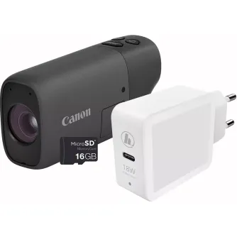 Get close with this palm-sized 12.1 MP, Full HD superzoom monocular camera kit. Boasting an optical 100mm and 400mm plus a digitally extended 800mm zoom¹, this lightweight, fully auto PowerShot ZOOM is ideal for birdwatching and watching sports as it gets you close to the subject from further away, while also being great for travel. Families will also love this as its perfect for capturing day-outs. This kit is completed with a 16 GB microSD card allowing you to record high-quality Full HD videos. This kit also includes an 20-Watt USB type-C charging adapter² for fast charging that also helps protect the battery life of the PowerShot ZOOM.