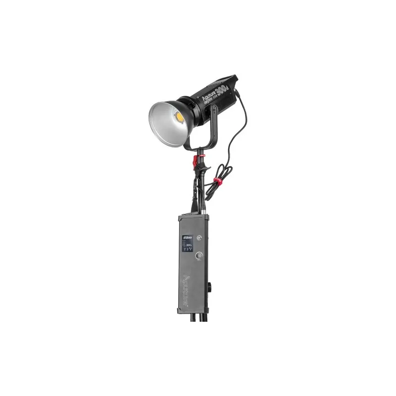 The LS C300d's performance is backed up by its design. The all-aluminum construction goes through numerous fabrication steps. The reflector and accessory mount is the widely used Bowens S-Type, and the wired controller is also separated from the body of the light, making it lighter and reducing its size. There's also an included wireless remote that allows you to control on/off and dimming functions from as far away as 492'. The LS C300d is ready for worldwide use thanks to its 110-240 VAC power supply. It also has a battery plate allowing you to use V-mount batteries for external power when mains current is unavailable. This LS C300d is delivered with a carrying bag to protect the light during travel and storage.