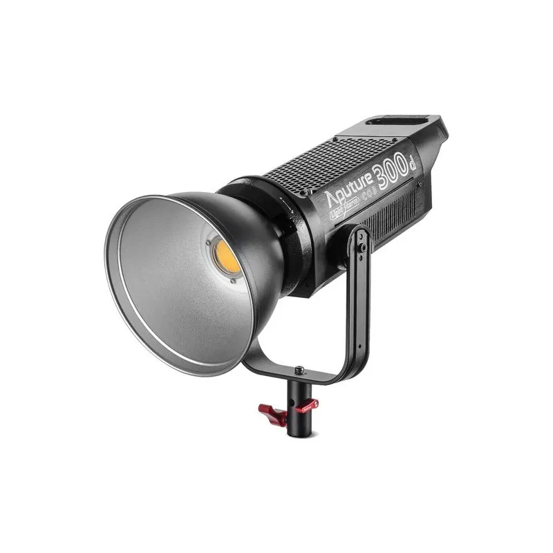 The Light Storm LS C300d LED Light from Aputure is a Chip on Board (COB) designed fixture with a 5500K color temperature that consumes only 300W of power while outputting 4451 fc of light with a standard reflector at a distance of 1.6'. In addition to power efficiency, this fixture also has a CRI rating of 95 and a TLCI rating of 96, indicating an accurate rendering of color. And the LS C300d can be seen but not heard which is ideal for sound sensitive environments. The intelligent cooling system employs temperature sensitive fans to regulate the heat. Even at maximum power the fan is undetectable by most people.