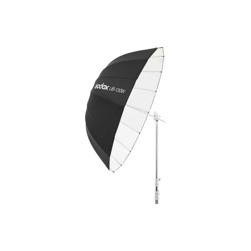 The 51" White Parabolic Umbrella from Godox enhances your ambient lighting and is well-suited for group shots and portraits. The parabolic design and white interior provide long throw capability while reducing overall contrast, and the umbrella can be used as either a key light or fill light.