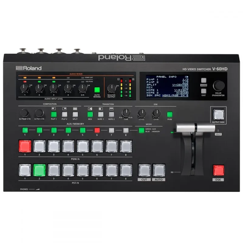 • The V-60HD’s user interface is easy for students, novices and can be controlled remotely through the LAN port using Roland’s Remote-Control Software from PC or Mac.