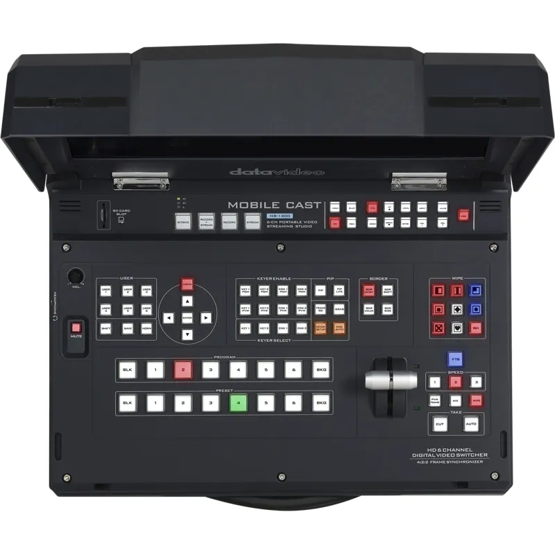The HS-1300 brings a new level of simplicity to production workflows. You will set up faster and easier thanks to its portable "briefcase" design. And thanks to its built-in H.264 web streaming encoder, you can stream your show to virtually any CDN like YouTube and Facebook in no time.