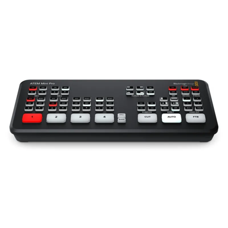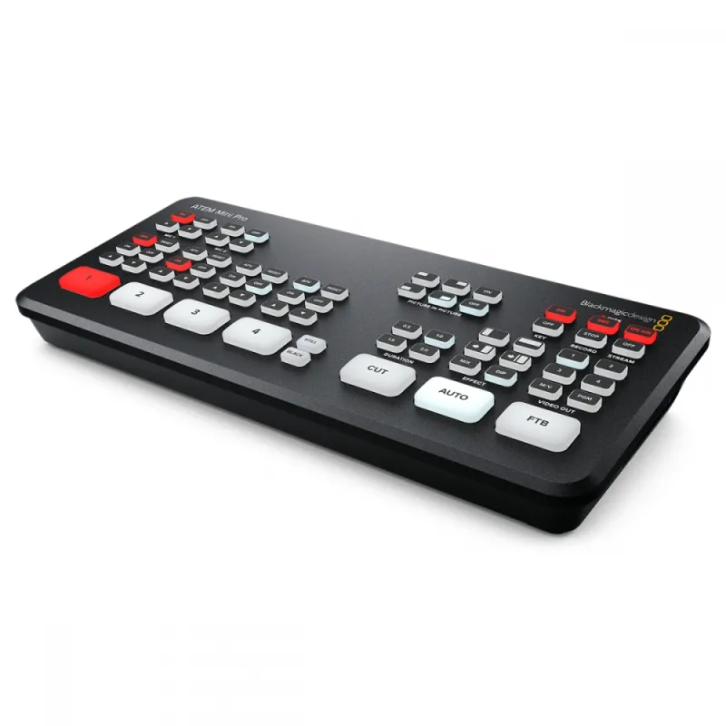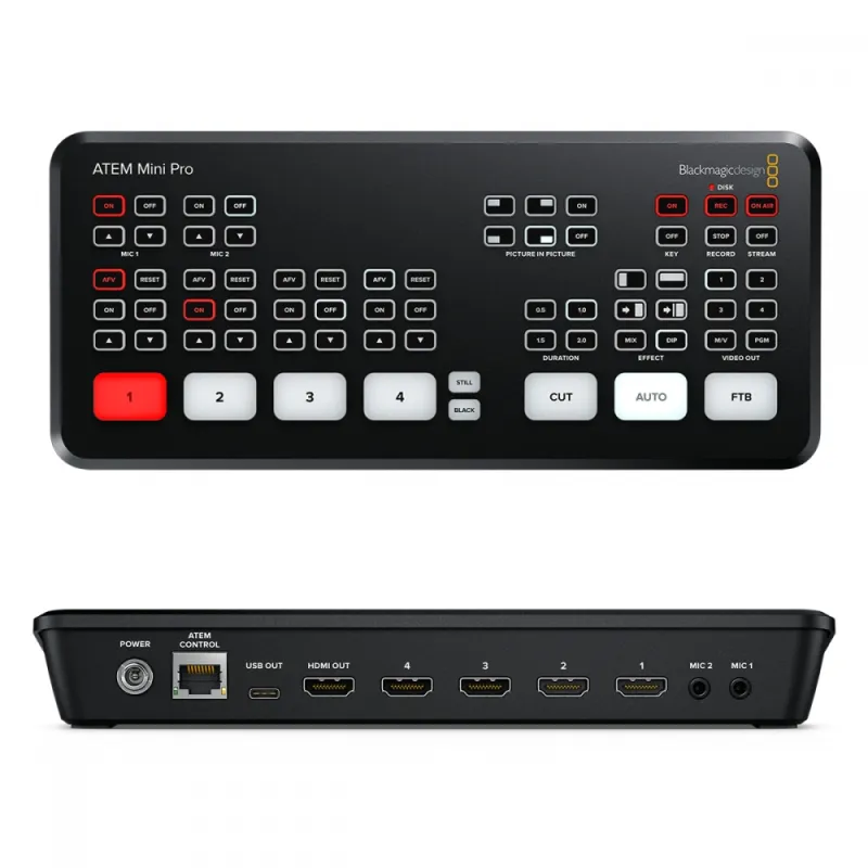 The ATEM Mini Pro ISO HDMI Live Stream Switcher from Blackmagic Design is a four-input live production switcher with an integrated control panel designed for multicamera live streaming up to HD video to the internet via Ethernet output. It features a USB output that allows you to record the program output as well as record the individual HDMI inputs to an external USB drive (not included). In addition to recording the program stream and individual inputs, the ATEM Mini Pro ISO also records the embedded audio and analog audio inputs, generating a DaVinci Resolve project file of your live stream. This allows you to take your live production into DaVinci Resolve to make tweaks or adjustments using the source material that is already on your USB drive.