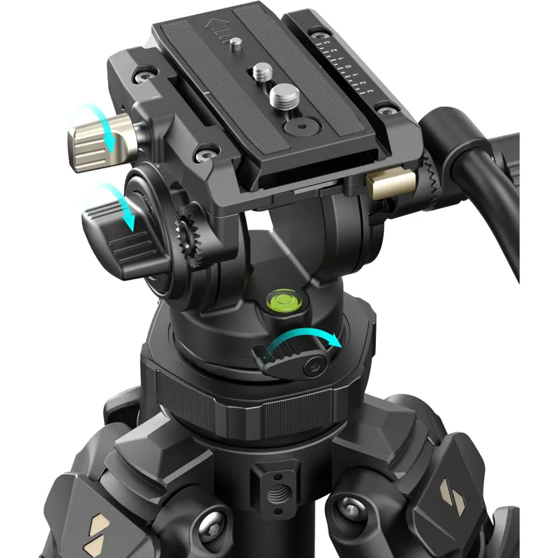 The kit includes a compact fluid head, featuring a damping system that allows you to pan the camera smoothly. When its center of gravity height is set at 50 mm, the panning and pre-set fixed counterbalance system can help precisely control the camera or other rigs weighing up to 4 kg for great counterbalance. The video head can carry as much as 6 kg.